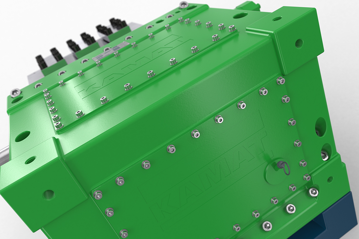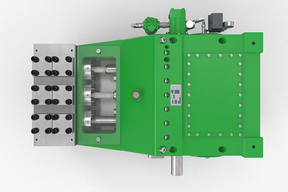 K35000高壓泵的驅(qū)動功率為350 kW,非常適合噴射和液壓應(yīng)用。 例如,它經(jīng)常與大型移動式噴射系統(tǒng)一起使用,已在化工行業(yè)服務(wù)多年,并在采礦行業(yè)滿足流量從400至600 l升/ 分鐘的需求。 在這種情況下,帶有強(qiáng)制潤滑齒輪和油冷卻器的K35000可以滿足24/7全天候運(yùn)行的要求。 K35000高壓泵采用經(jīng)典的KAMAT模塊化組件系統(tǒng)構(gòu)建,因此可以靈活地適應(yīng)工作壓力和介質(zhì)等要求。 因此,它也經(jīng)常用于過程處理領(lǐng)域。